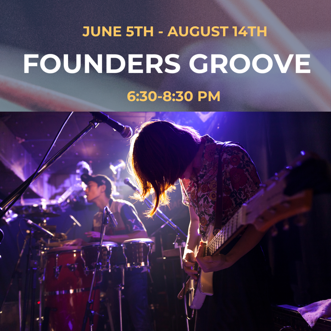 This event is all about celebrating creativity, community, and of course, grooving to some awesome tunes. Join us for an evening filled with live music, delicious food, and fun family vibes. So grab your friends, some folding chairs, and come dance the day away with us at Founders Groove!